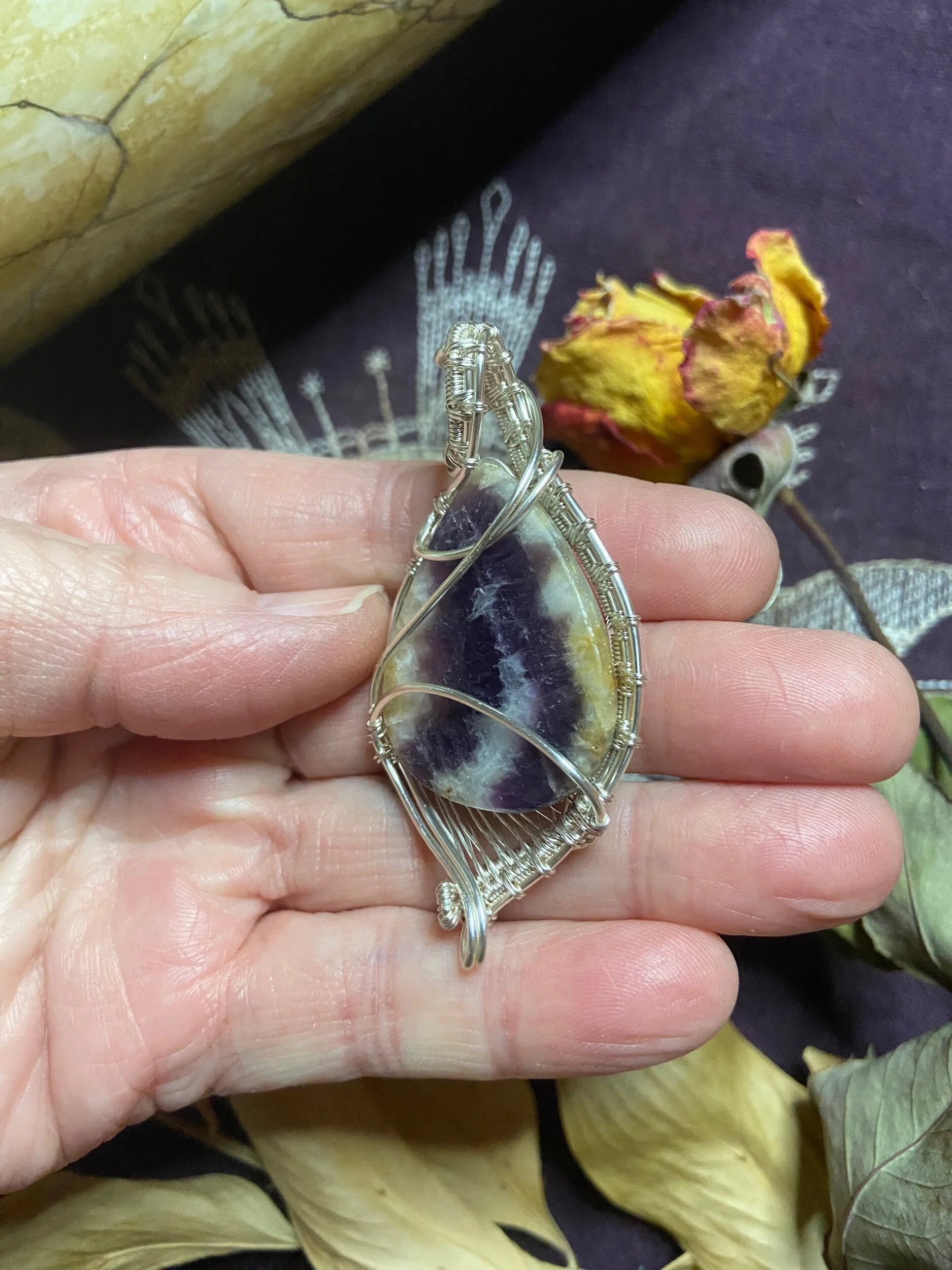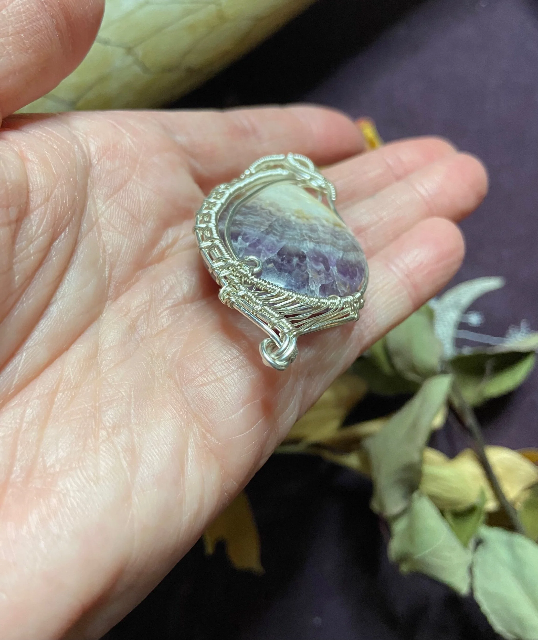 Amethyst Hand Wrapped Silver Plated Pendant, All Natural, Metaphysical