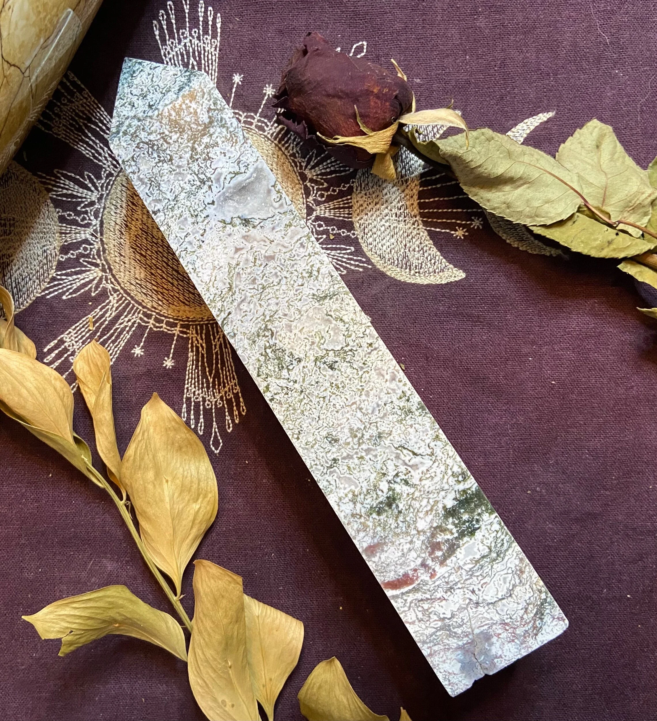 High Quality, Large Moss Agate Tower, Natural Crystal, Metaphysical
